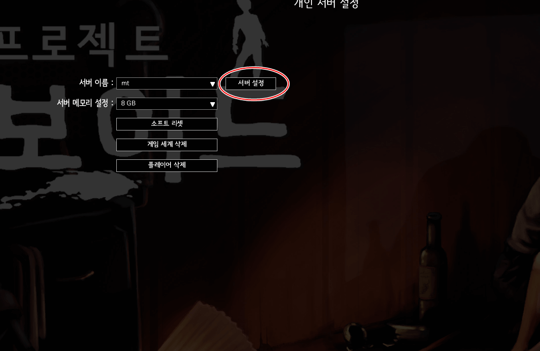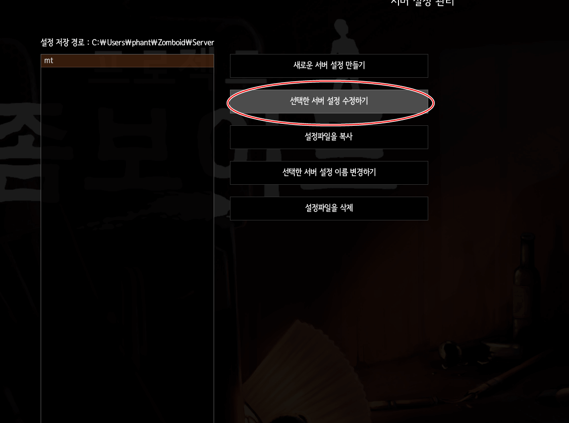 그러면 서버이름 옆에 서버 설정을 눌러주세요. 새로운 서버 설정을 만들기를 눌러주셔서 해도 좋고 원래 서버가 존재한다면 선택한 서버 설정 수정하기로 들어가시면 됩니다.