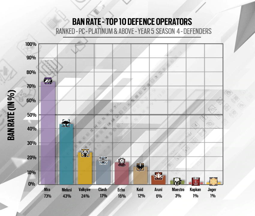 Mira가 1.5x 조준기를 사용하면 더 멀리 조준할 수 있다는 인식 때문에 Mira의 금지율은 압도적으로 높아졌습니다.