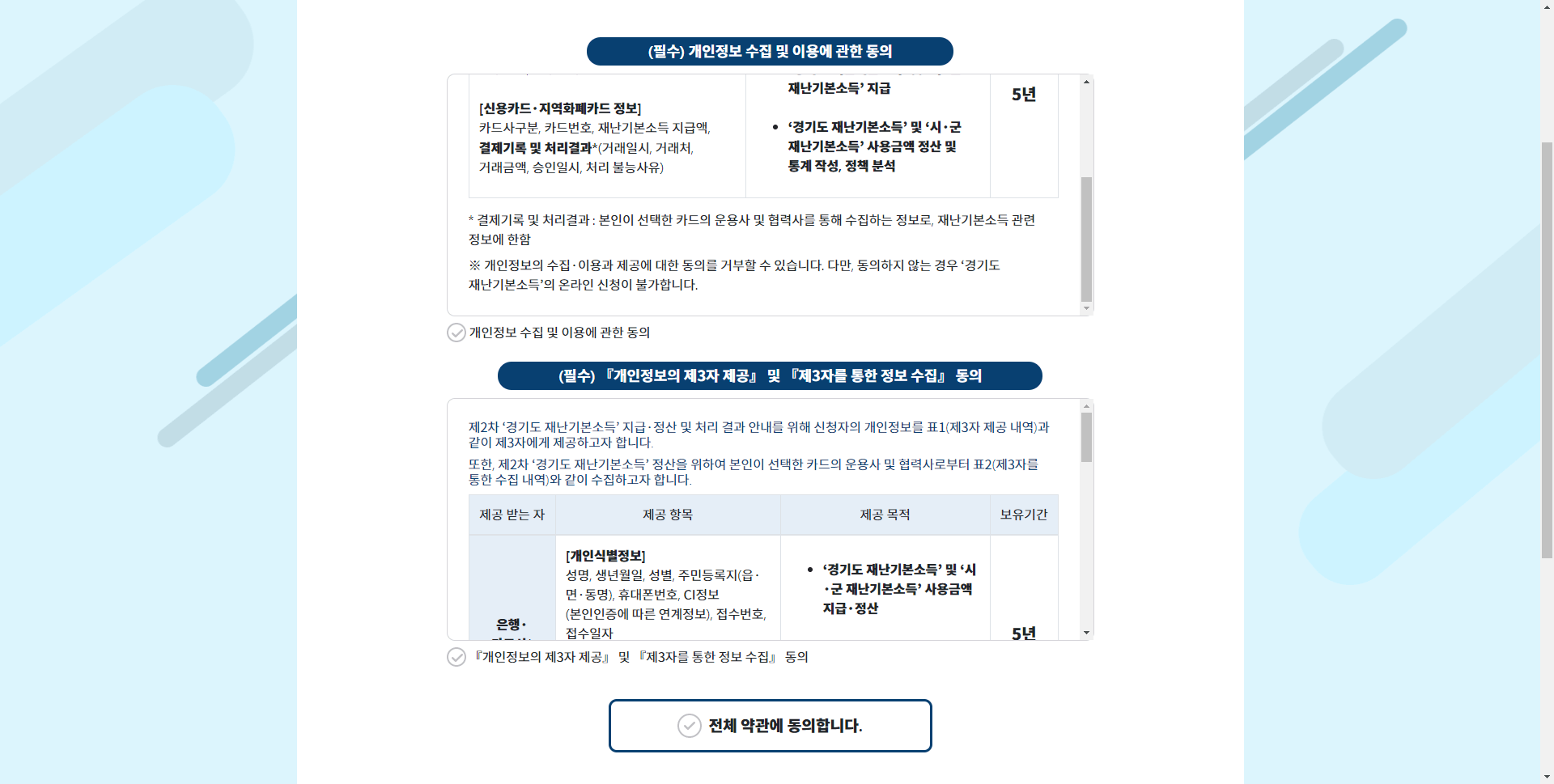 이 화면은 개인정보에 관한 약관 동의이기 때문에 밑에 전체 약관에 동의합니다를 눌러주시고 확인을 눌러주시면 됩니다.
