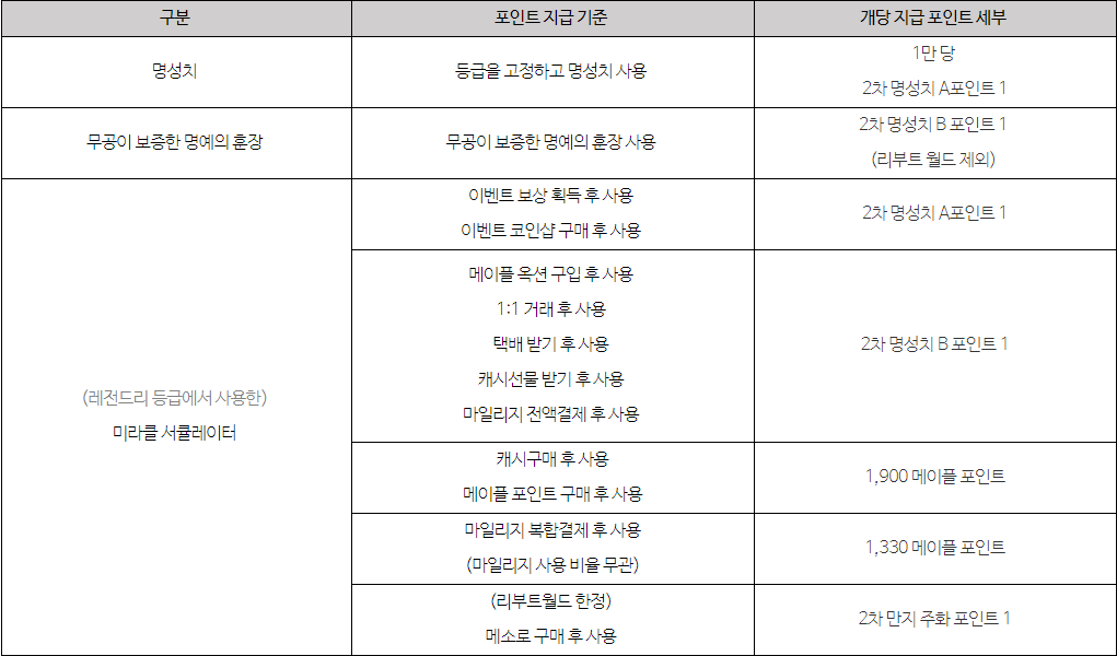 이제는 메이플스토리 명성치입니다. 명성치는 사용한 명성치 만큼 보상을 지급하며 명성치 또한 2019년 2월부터 지급한다고 합니다. 명성치는 21년 2월 19일부터 24일까지 어빌리티 2개 이상을 고정하고 사용한 명성치는 지급 대상에서 제외한다고 합니다.