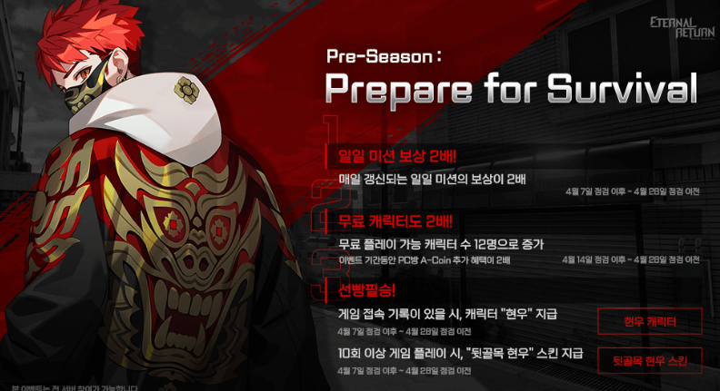 그래서 영원회귀:블랙서바이벌에서 앞으로 시작할 시즌2를 준비하라고 이벤트를 진행합니다.