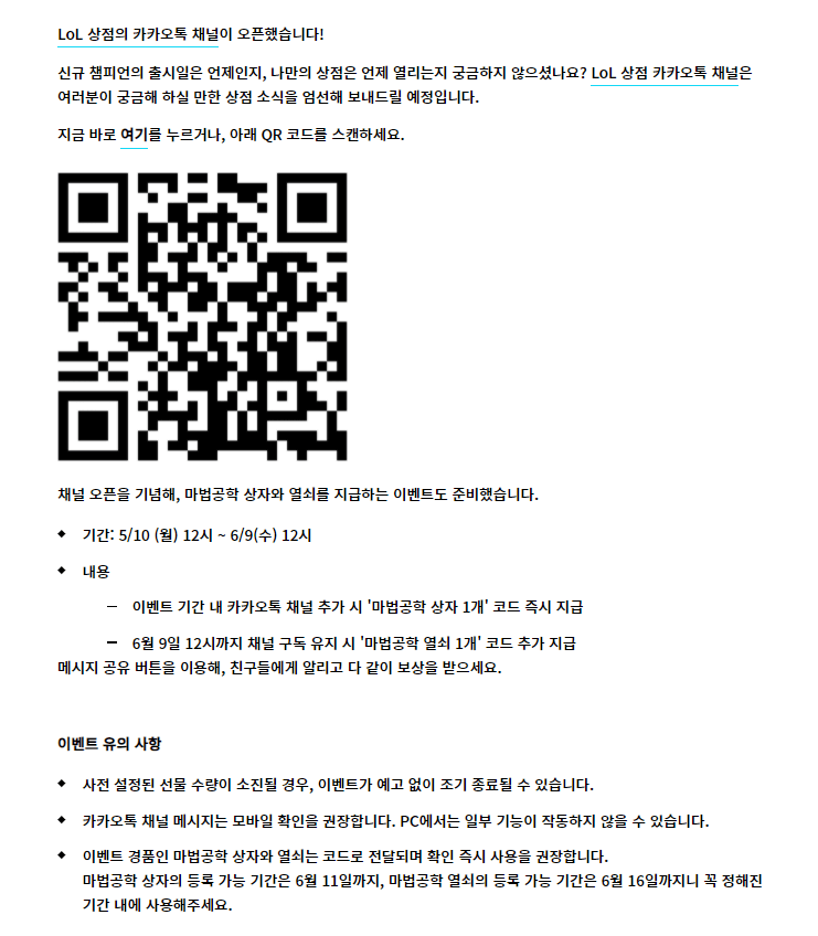 롤 카카오톡 채널 홈페이지 바로가기