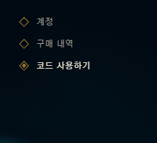 사람 모양에 톱니바퀴가 있는 아이콘을 클릭하면 왼쪽에 계정, 구매 내역, 코드 사용하기가 나옵니다.
