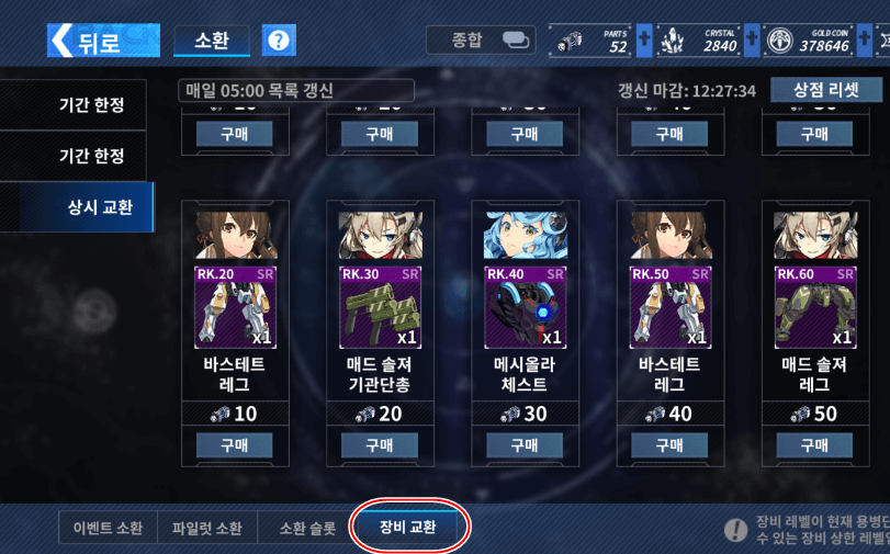 3. 전용기 상점은 소환에 들어가시면 맨 오른쪽 아래에 존재합니다. 거기서 바이올렛 전용기 60제 무기랑 백팩 구매하시고 나머지는 낮은 것으로 구매하세요. 무기랑 백팩을 제외하고는 50 레벨에 열리는 바이올렛 전용기 던전에서 파밍을 다시 하셔야 합니다. 참고로 4세트가 2셋 + 60제 범용 방어구 좋습니다.