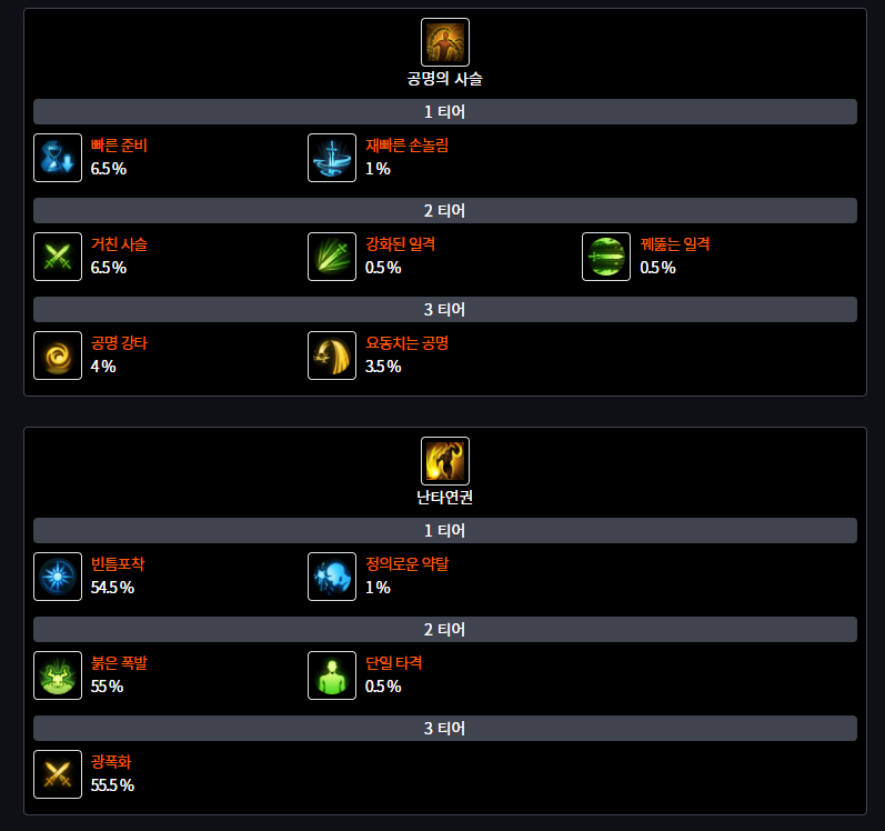 인파이터의 스킬에서 공명의 사슬과 난타연권만 가져온 사진입니다.
