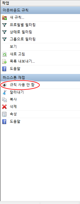 규칙을 사용 안 함 상태로 바꿔주세요.
