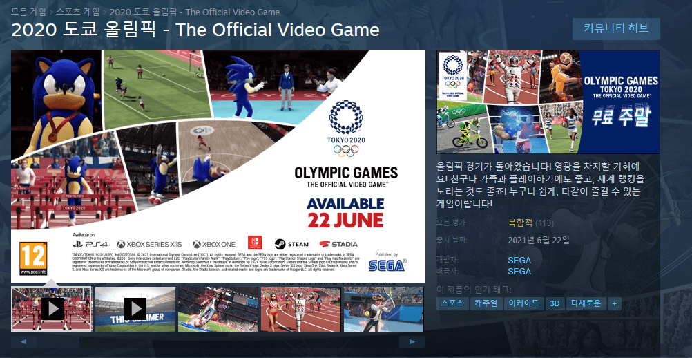 도쿄 올림픽 기념으로 나온 것이라 7월 24일부터 2일 동안 무료로 플레이가 가능합니다.