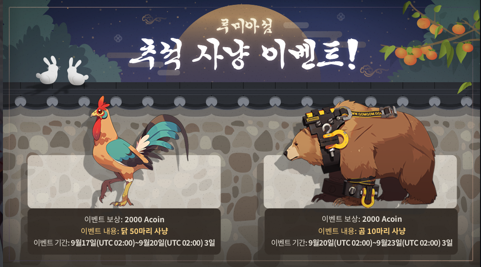 닭과 곰을 잡으면 2000천 코인씩 주는 이벤트입니다.