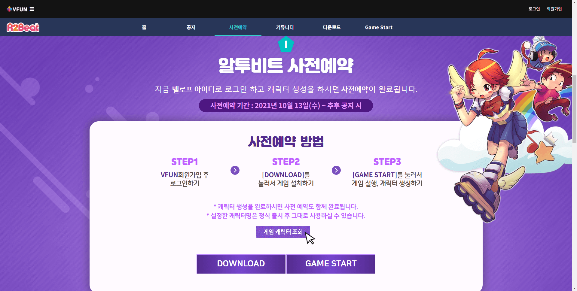 롤러블레이드를 탄 캐릭터를 조종하며 리듬게임을 하던 알투비트가 다시 돌아온다는 발표를 하면서 사전예약 이벤트를 진행합니다.