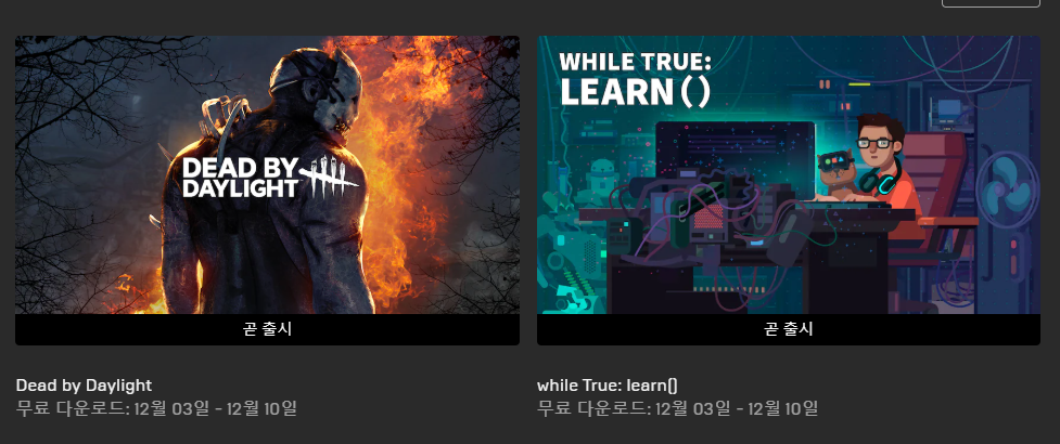 에픽게임즈에서 일주일마다 무료로 게임을 배포합니다.