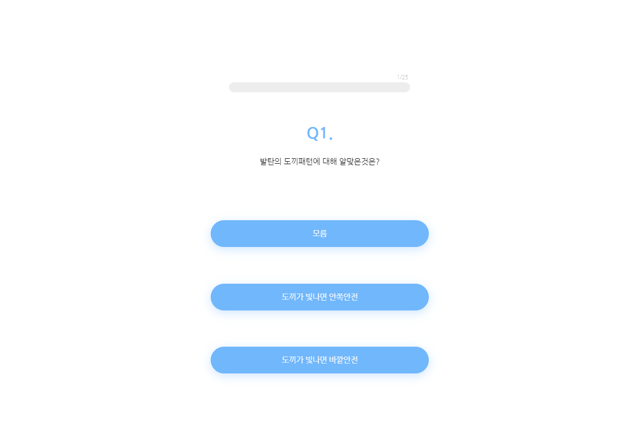 맨 처음의 질문이며 총 25개의 문제가 존재합니다. 다 객관식으로 고르는 것이니 자신이 아는 만큼 도전해보세요.
