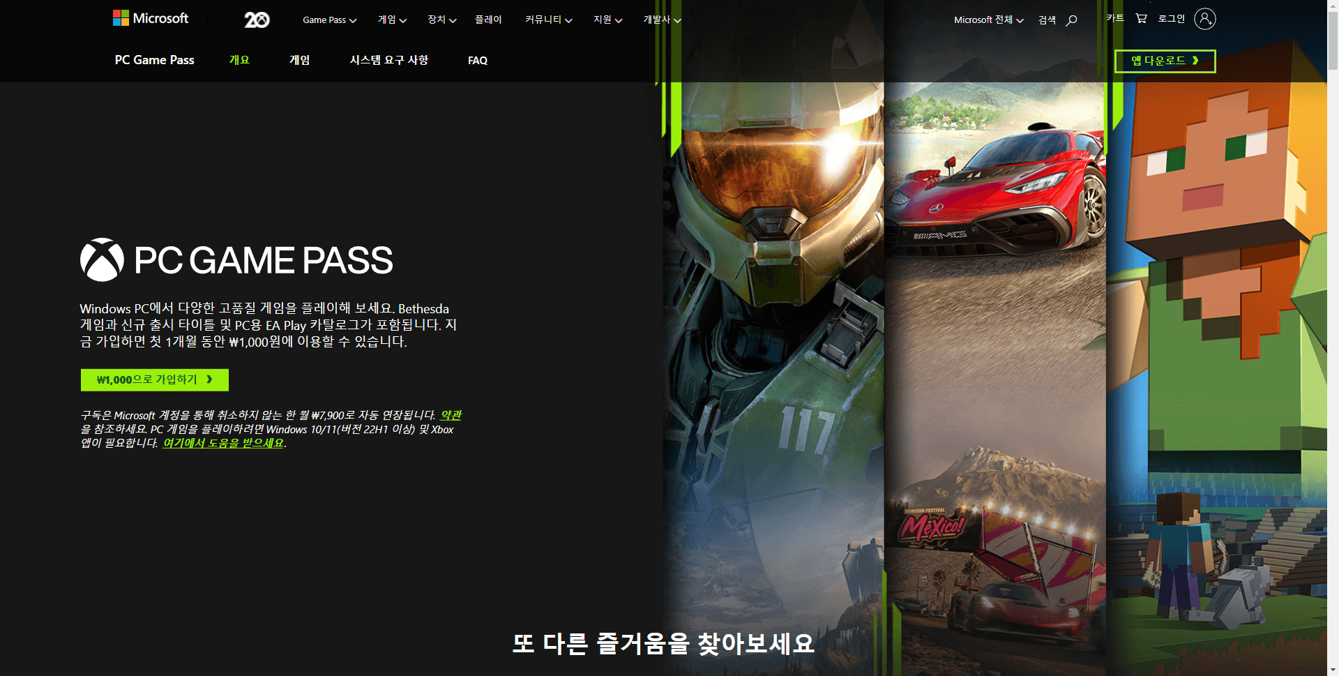 Posted at 2022. 1. 25. 21:26 | Posted in 추천공간xbox PC 게임 패스로 각종 게임을 한 달 동안 천 원에 즐길 수 있어서 알려드리려고 합니다.