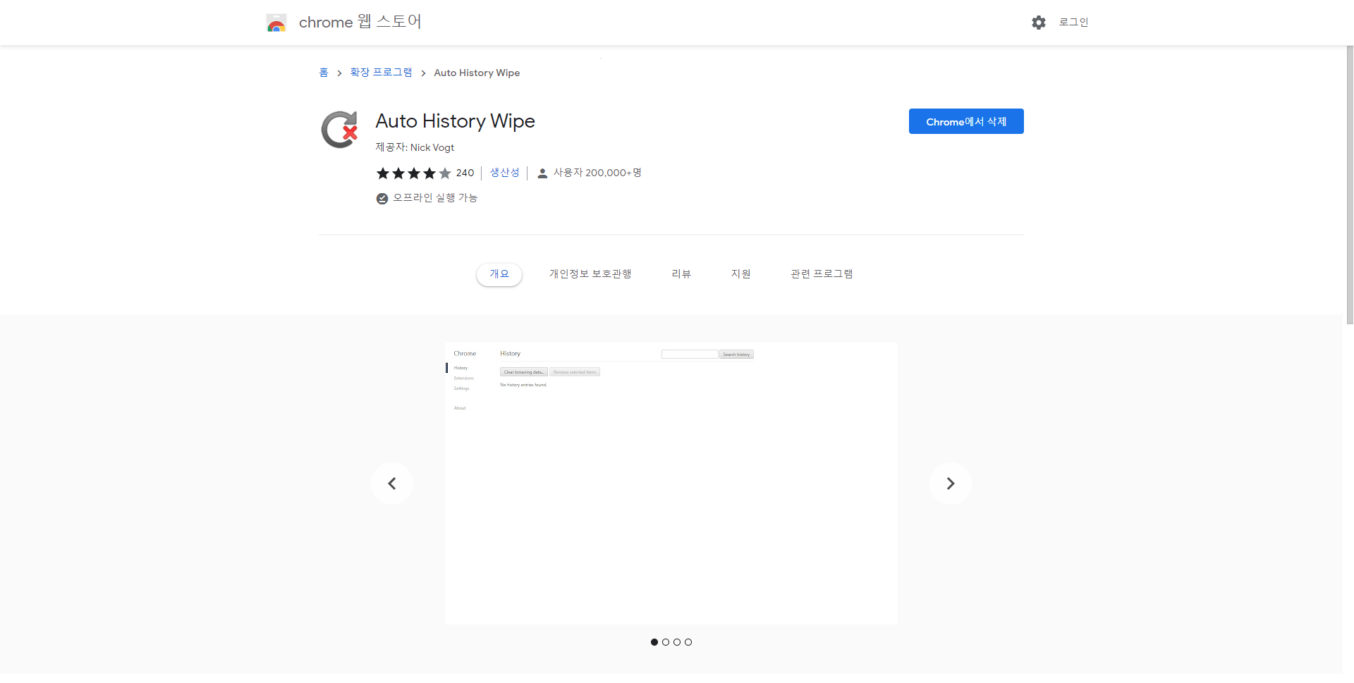확장 프로그램은 오토 히스토리 와이프(Auto History Wipe)입니다.